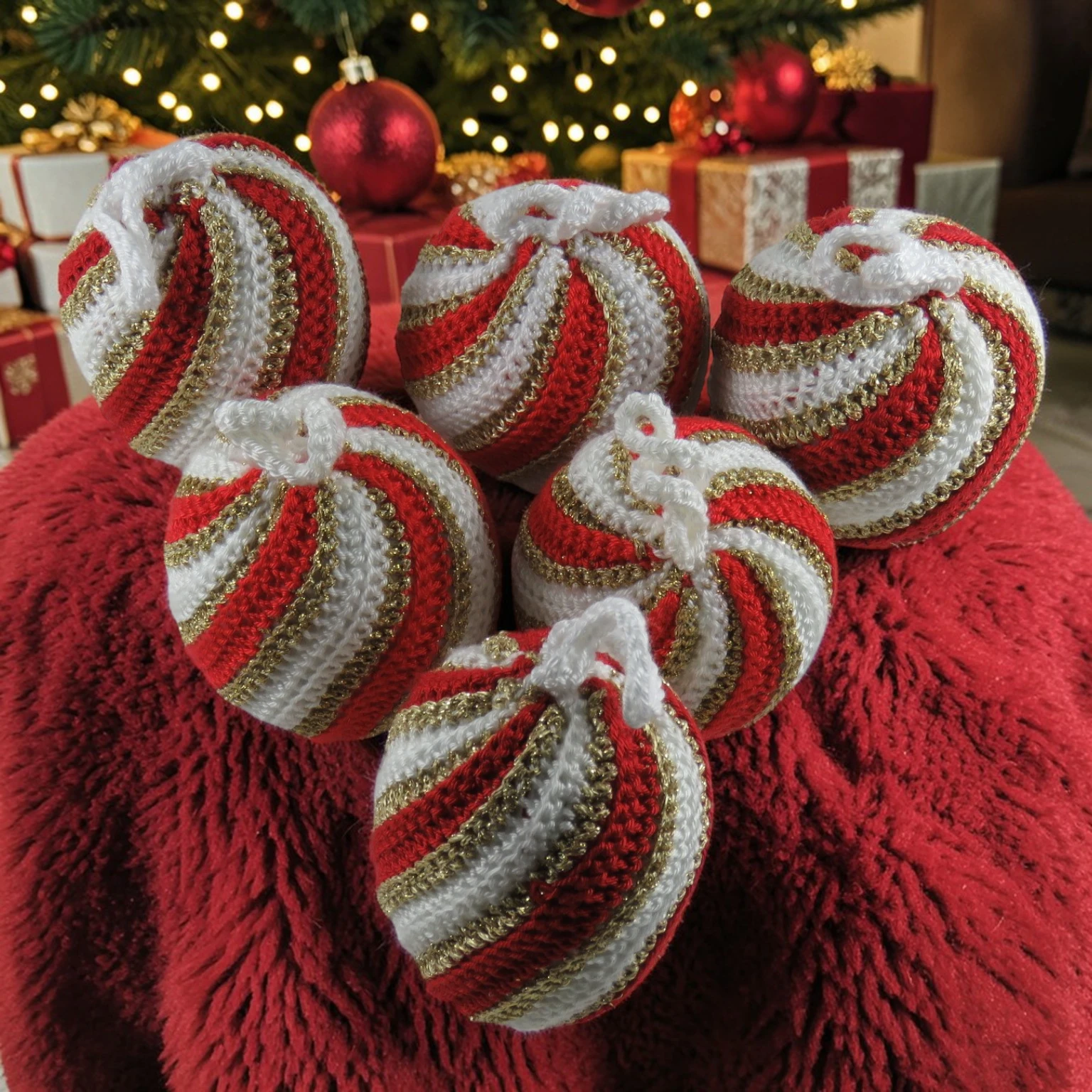 Wie kleine Weihnachtssterne aus Garn wirken diese liebevoll gehäkelten Kugeln, als wären sie direkt aus einer winterlichen Zauberwelt gefallen. Die geschwungenen Linien erinnern an wirbelnde Magie, an funkelnde Festtage und an leise Momente voller Wärme und Geborgenheit. Jede Kugel trägt ihren ganz eigenen Zauber in sich. Durch das harmonische Spiralenspiel entsteht ein besonderer Blickfang, der sofort ins Auge fällt und jedem Raum eine märchenhafte Note verleiht. Die Form wirkt verspielt und zugleich edel – wie ein kleines Kunstwerk, das mit viel Liebe von Hand entstanden ist. Ob am Weihnachtsbaum, an Zweigen, Kränzen oder als liebevolle Dekoration an einem besonderen Platz – diese Kugeln erzählen von Handarbeit, Fantasie und dem stillen Glanz der Winterzeit. Sie bringen nicht nur Struktur und Charme mit, sondern auch das Gefühl, dass in den kleinen Dingen oft der größte Zauber steckt. Ein zauberhafter Schmuck für alle, die Weihnachten nicht nur dekorieren, sondern fühlen möchten.